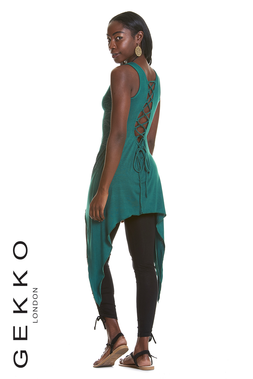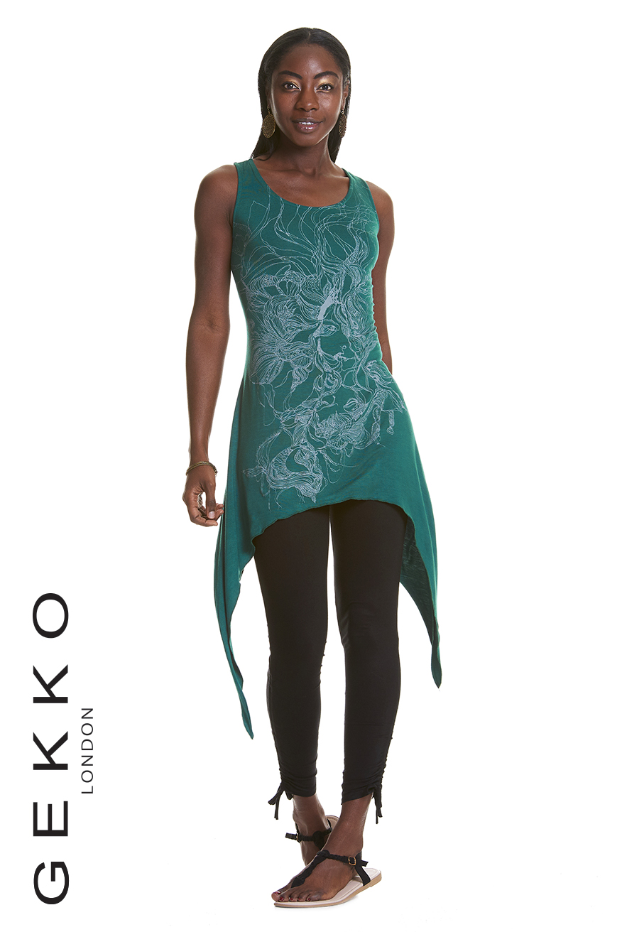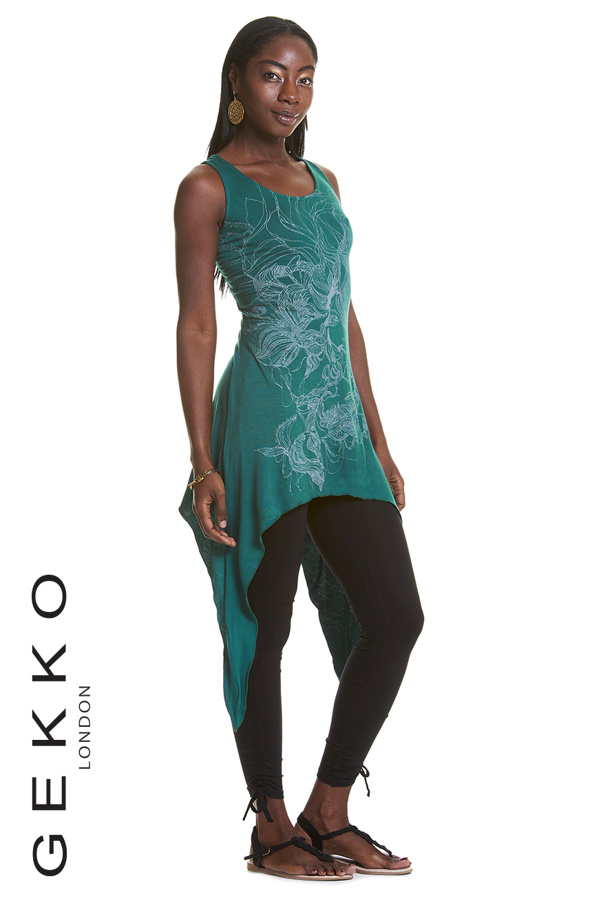 The Lenght is the same for both sizes: cm 100 / inches 39.5 (from underarm to longest point on the side).
