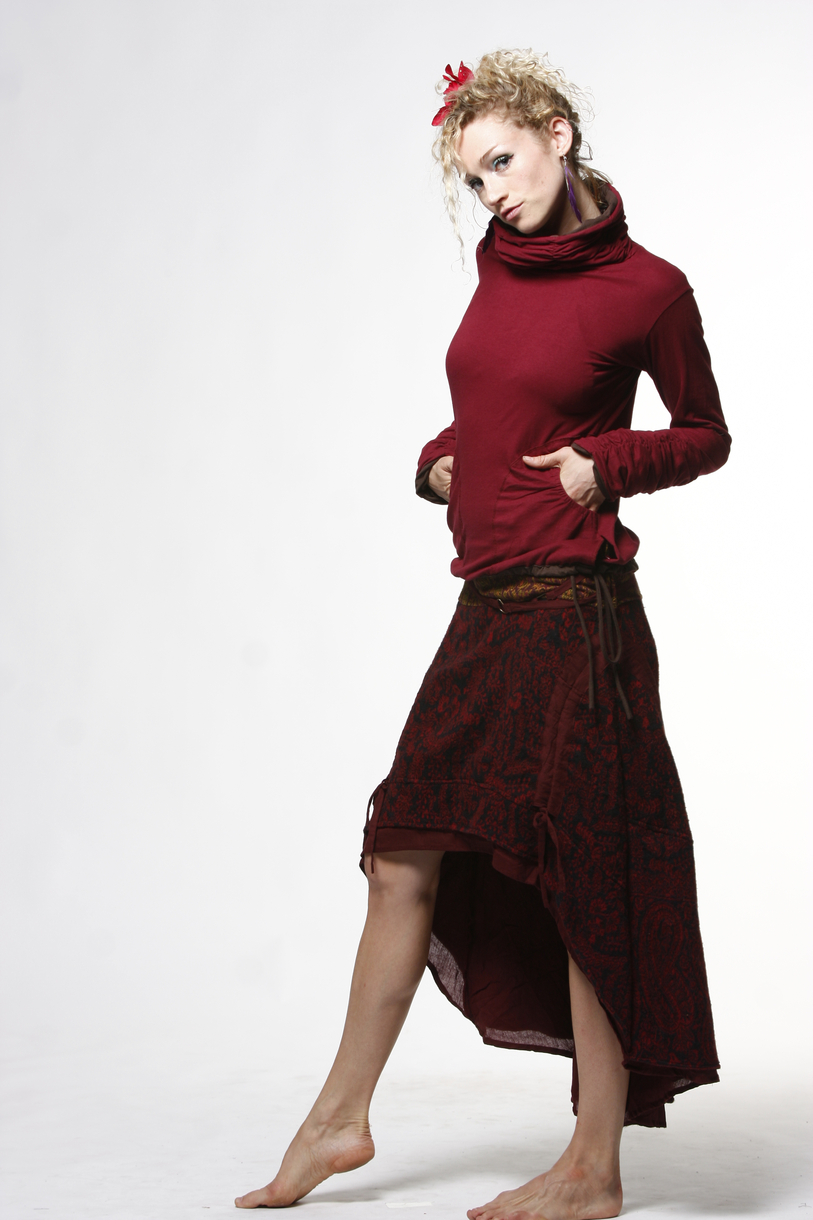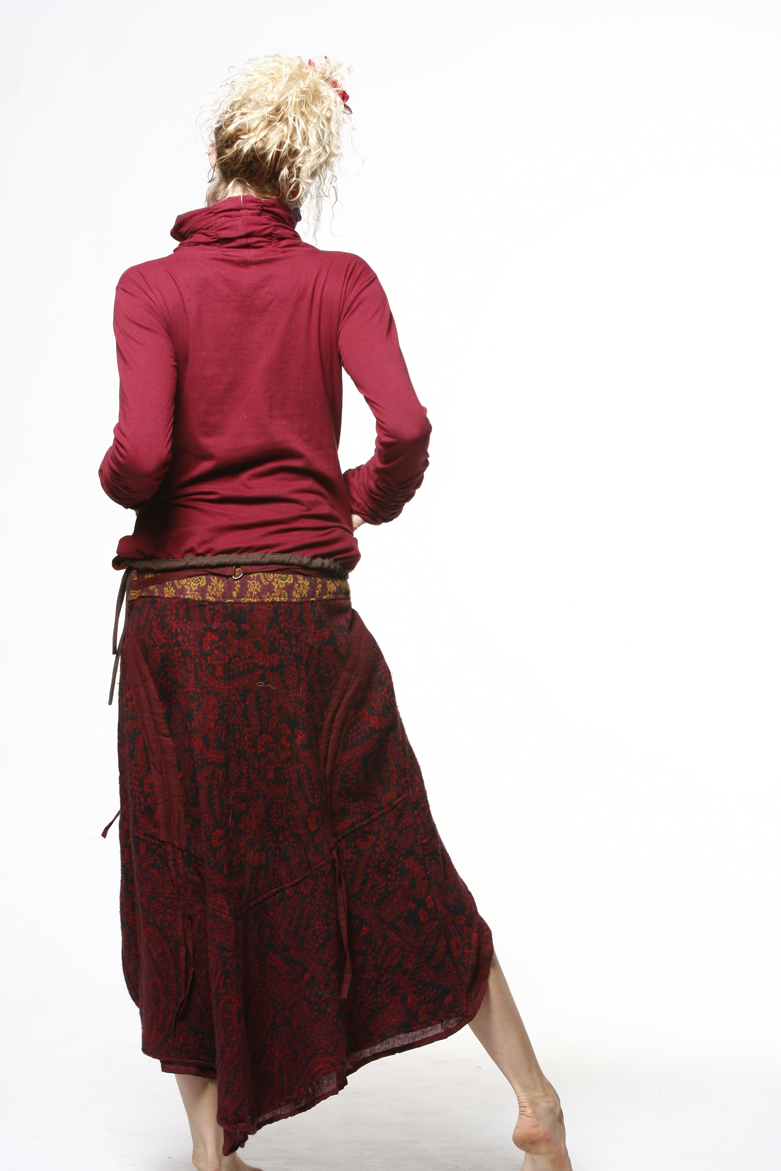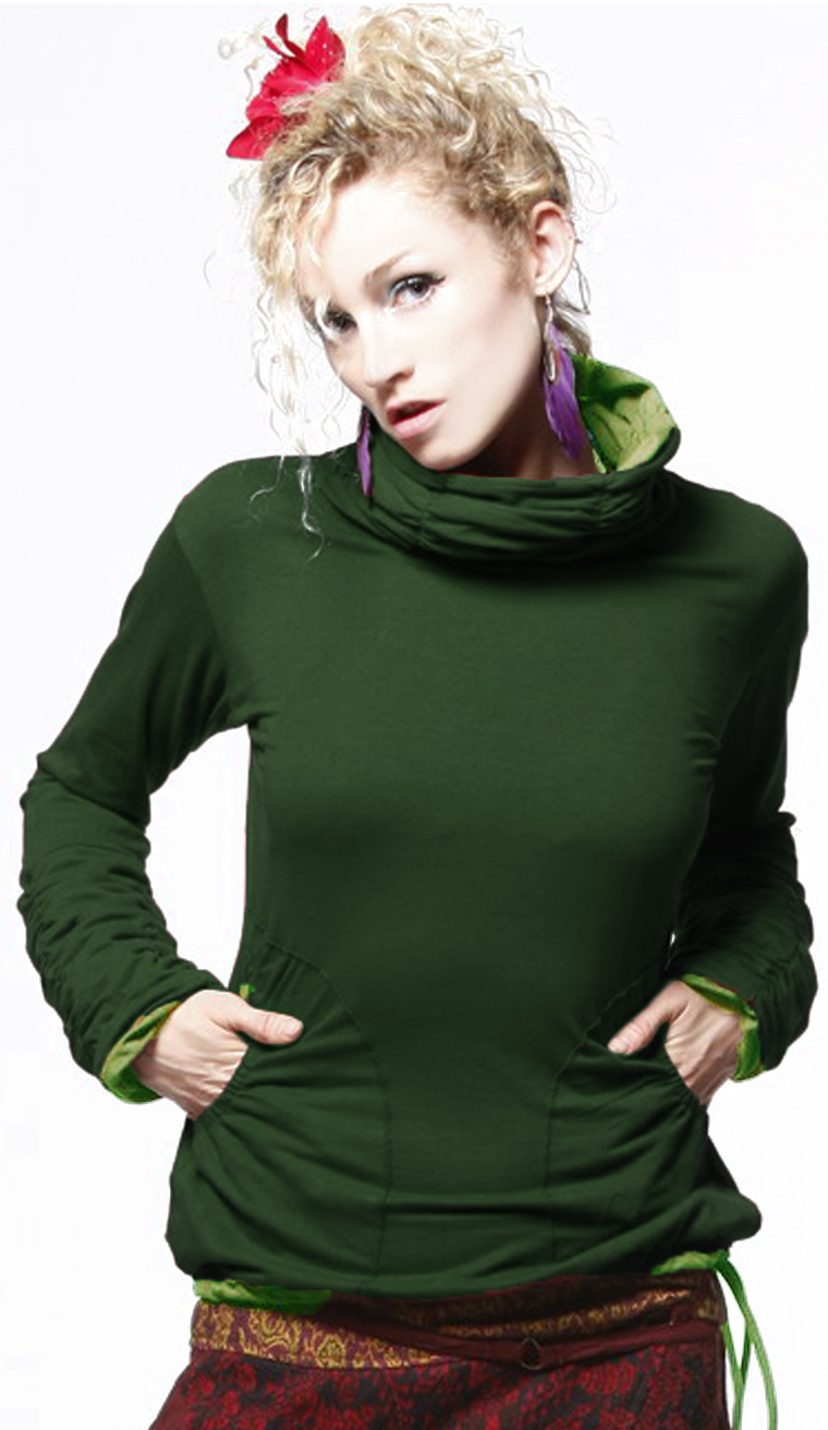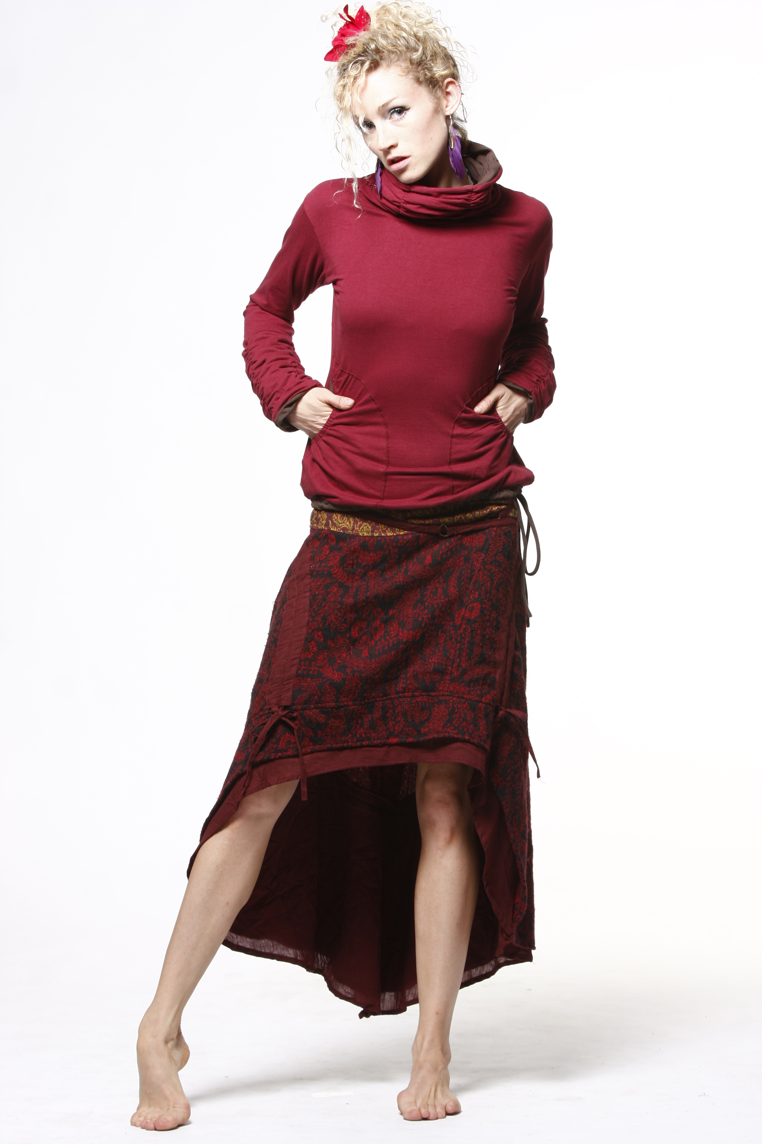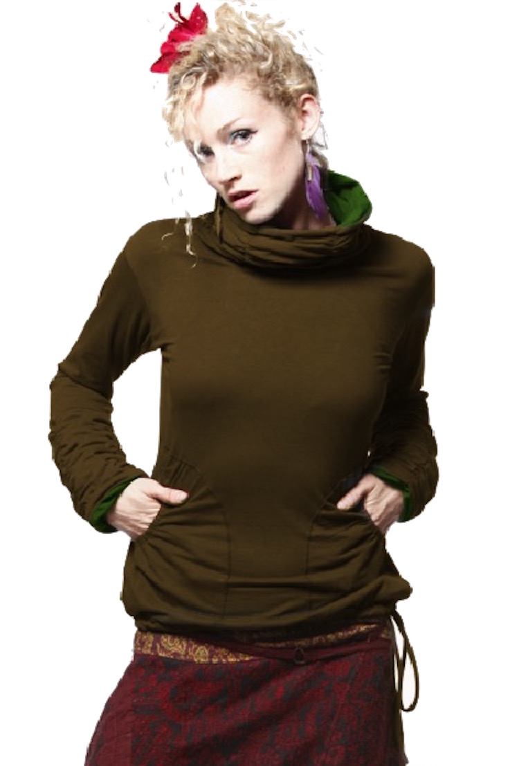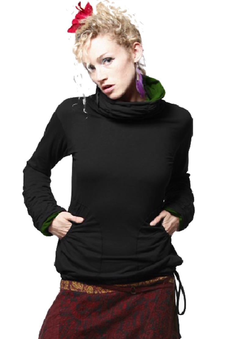 Top with gathered neck and wrists. It has a waist string which allows to regulate the width.